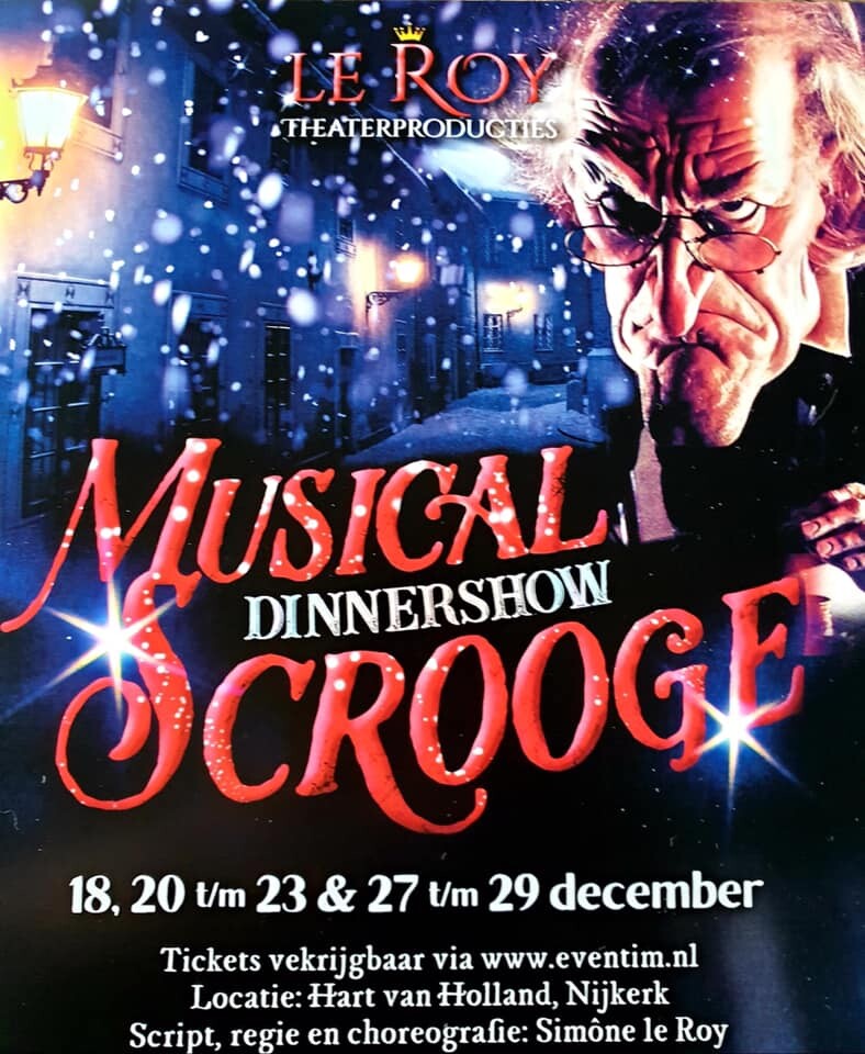 Gast verteller bij de Scrooge Musical Dinnershow van Simone Le Roy in het Hart van Holland in Nijkerk.